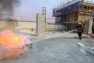 在疏散引导区,消防员组织工地施工人员有序撤离,现场讲解高层火灾逃生要点。整个过程衔接流畅,兼具实战演练与安全教育的双重效果,切实提升了施工人员的应急意识和自救能力。