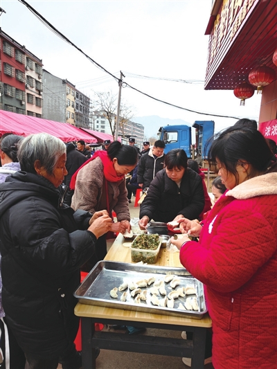 “预备——开始!”9点整,包饺子大赛在一片欢呼声中开赛。参与比赛的各村民小组同台竞技,6人一组的参赛队伍围桌而坐,揉面、放馅、捏褶,动作行云流水。来自区志愿服务协会的志愿者们穿梭其间,及时补充饺子皮和馅料,还不忘为参赛选手加油鼓劲。“大家手再快一点,注意造型美观,咱们争取拿第一!”社会组织代表队的王阿姨话音刚落,小组队员们默契配合,一个个饱满圆润的饺子很快铺满了托盘。