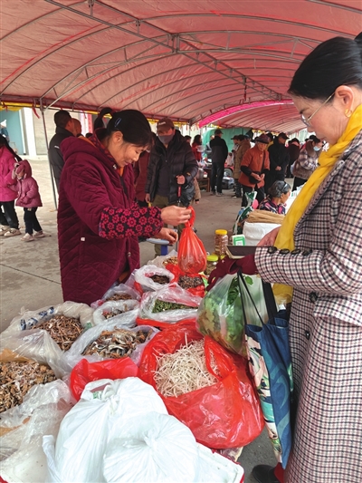 当天8点30分,随着主持人热情洋溢的致辞,“冬至遇大幕,赶集福满路”年货节活动正式拉开帷幕。“张阿姨,您这土鸡蛋怎么卖?”“老乡,再生稻的煮饭技巧能教教我吗?”摊位前,志愿者们正忙着帮农户推介产品,耐心解答顾客疑问,参与文艺演出的演员们则在舞台旁紧张彩排,五彩的演出服在冬日阳光下格外亮眼,吸引着村民们驻足等候。“区民政局组织我们来捧场,不仅能帮乡亲们多卖货,还能给大家带来欢乐,这样的活动真好!”参与活动的李大姐一边用手指着活动现场,一边笑呵呵地说道。