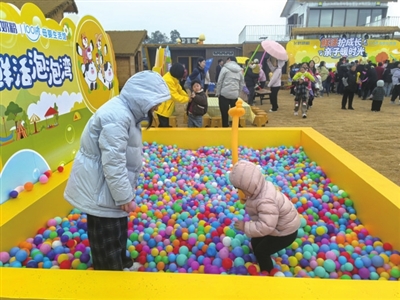 走进“乡村集社”,处处洋溢着欢声笑语。在红菜薹采摘区,游客们提着菜篮子,弯腰采摘,感受收获的喜悦;柴火灶旁,市民围炉煮茶,闲话家常,暖意融融;亲子乐园里,家长带着孩子松土种菜,体验农耕乐趣;休闲区内,某母婴店的代理商正组织会员开展团建活动。