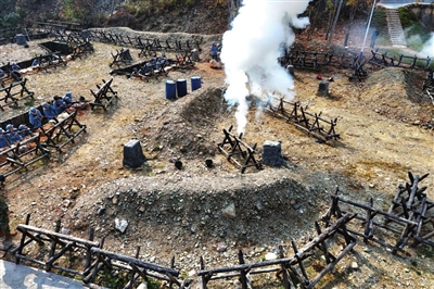 12月18日,来自武汉市黄陂区的四百余名学生,走进通山县大畈镇隐水村重走红军路研学基地开展研学活动。同学们身着统一的红军服装,有序参观了“走进英雄”展馆,在“时光隧道”环节,沉浸式声光技术生动再现了红军浴血奋战的峥嵘岁月,大家蹲进战壕,模拟战斗场景,切身感受革命先辈的英勇无畏。 (记者鲁芳 通讯员金珂如 陈雄晖)