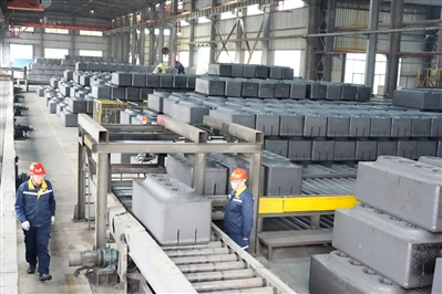 12月23日,赤壁长城炭素制品有限公司焙烧工区,焙烧炉生产线及生坯转运、编组、装炉工作井然有序。