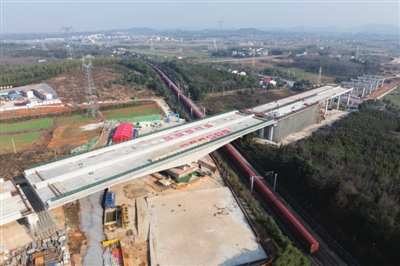 12月25日,由湖北交投集团投资建设、中铁十一局承建的咸宁桂花至汀泗高速公路(咸宁南外环)与京广铁路交叉工程转体桥顺利完成转体。