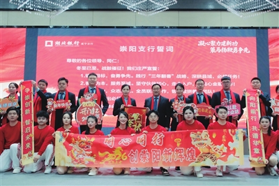 湖北银行咸宁分行党委书记、行长蔡峰作动员讲话,字字千钧、催人奋进。他向各支行授予“军令状”,号召全体干部员工凝心聚力、实干担当,在2026年新征程上勇挑重担、奋勇争先,以一域之光为全局添彩。围绕做好2026年“春天行动”各项金融服务工作,他强调,2026年是“十五五”开局之年,全行上下要深刻洞察一年来外围环境更“好”、服务品牌更“亮”、标准化建设更“强”、发展质效更“优”、队伍实力更“硬”等一系列变化,准确识变、科学应变、主动求变,聚焦主责主业,主动把“春天行动”融入地方发展大局,进一步坚定信心、乘势而上,大力发扬“拼抢实”优良作风,统筹好发展和安全,以 “时不我待、只争朝夕” 的紧迫感,全力以赴决胜收官、谋好开局,以自身高质量发展赋能全市经济社会发展行稳致远。