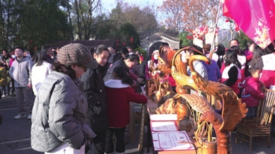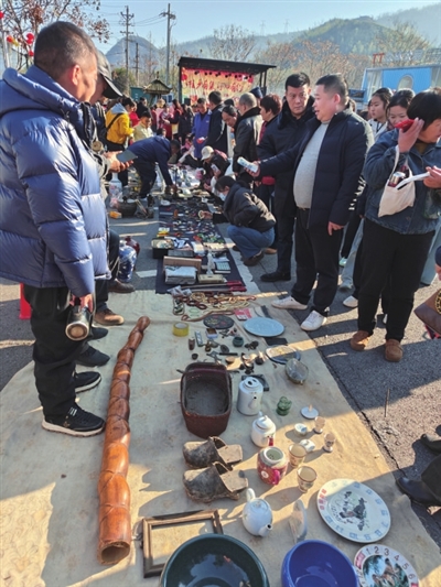 舞台之外,十大特色体验区各展风采,人流涌动、热闹非凡。“和美民俗”风情体验区里,糖画艺人手腕轻转,晶莹糖浆在石板上化作龙、凤、生肖等栩栩如生的图案,引得孩子们驻足围观;星星村、古田村、马鞍村带来的竹跑步机、竹秋千、竹椅等竹工艺品,尽显乡土匠心,实用又雅致;一旁的“穿越历史”古玩展示区陈列着跨越岁月的器物,游客在方寸之间感受中华文明的深厚积淀,为活动增添了几分古雅意趣。