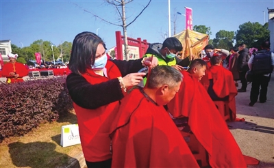 便民生活服务区内,各单位“摊主”各司其职送服务上门。爱心义剪摊位前群众络绎不绝,志愿者娴熟手艺获连连称赞;“黄手环”公益活动为老人发放手环、讲解防走失知识;县疾控中心、农业农村局等单位分别开展传染病防治、农技咨询等服务,司法局、消防大队等则普及法律知识、消防安全等内容,人社局志愿者耐心解答社保、就业等疑问,把惠民政策与贴心服务送到群众身边。