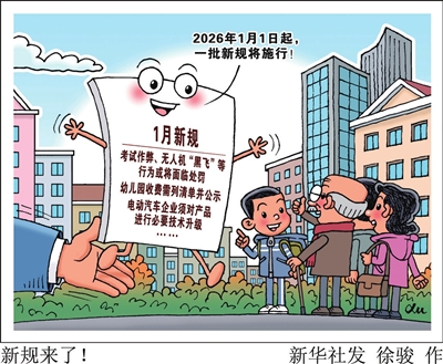 新华网消息 2026年1月1日起,一批新规将施行,事关社会治安、保育教育、电动汽车、网络安全等多方面,更好回应群众关切,护航美好生活,增添发展活力……一起来看,哪些你最关注?
