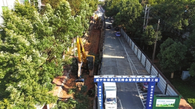 1月6日,长安大道转盘附近,咸宁市煤机片区排水管网更新改造工程正在施工,片区内部分路段已经封闭。