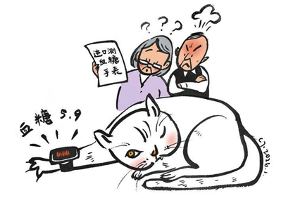 老人的家人发现该手表能给所有物品测出血糖,猫咪血糖数值5.9、吸尘器血糖数值7.4……吸尘器不用控血糖,商家的“万能手表”该矫正了。