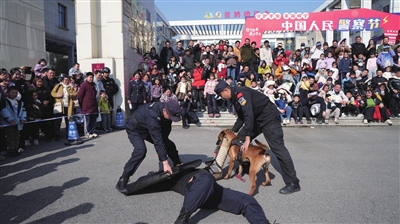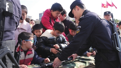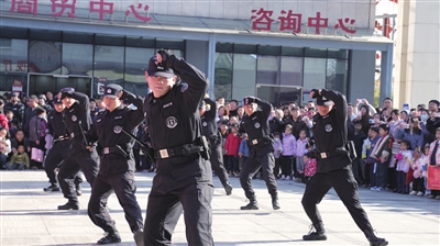 特警队员的操课表演成为焦点。擒拿格斗、战术枪操等演示动作整齐划一、刚劲有力,引来观众阵阵喝彩与掌声。活动现场还收到了幼儿园小朋友们送上的节日祝福与礼物。