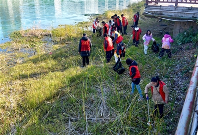 当天下午2时许,咸安区滨河社区党群活动中心,“红影”绰绰。市委直属机关工委、市公检中心、咸安区妇联、咸安区林业局的党员志愿者与社区干群30余人,身着红马甲,手持扫帚、撮箕,整装待发。