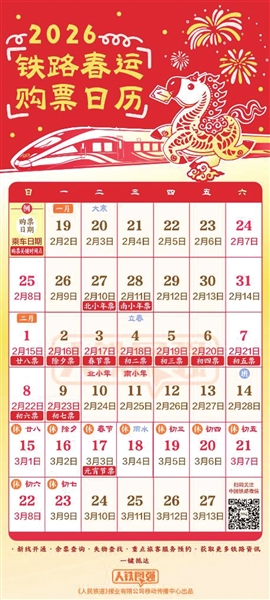 国铁集团客运部负责人介绍,铁路部门将充分运用发达完善高铁网和现代化铁路网,特别是用好2025年新开通的线路、车站和一批新投用的复兴号动车组,在2026年一季度图日常线、周末线列车开行方案的基础上,科学编制春运列车运行图,进一步安排加开旅客列车,根据客流需求梯次投放运力,预计客流高峰期单日最高可安排开行旅客列车超1.4万列,客座能力同比增长5.3%。