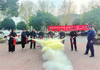 本报讯(记者王奇峰 通讯员章学谦 周景)1月16日,咸安区浮山街道盘泗洲社区联合区消防救援大队、海德公馆小区物业,在海德香街开展消防演练活动,为商圈商户及夜市餐饮店从业人员送上消防安全培训。