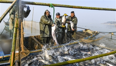 据了解,嘉鱼密泉湖水质逐年提升,投放的花鲢、白鲢鱼等俏销全国,预计年产量200多万斤。