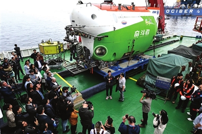 本航次中,“探索一号”科考船搭载了中国自主研发的“奋斗者”号载人潜水器。它是目前国际上唯一一台具备万米海底强作业能力的载人潜水器。