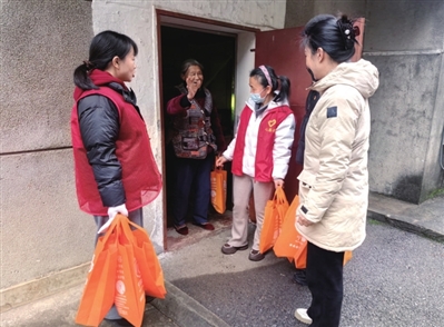 活动当天,爱心小分队穿梭在社区楼栋间,将爱心礼包逐一送到慰问对象手中。在独居老人李奶奶家中,“桂乡管家”轻轻推开房门,把保温桶里的腊八粥细心盛好,耐心询问老人近期生活与身体状况,反复叮嘱她冬日注意保暖、保重身体。针对行动不便的失能老人,志愿者们不仅将餐品送到床头,还主动帮忙整理房间、排查家中水电安全隐患,用实实在在的行动解决老人的生活难题。