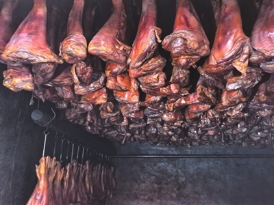 本报讯(记者 鲁芳)临近春节,年味渐浓,熏制腊肉是很多家庭迎接新春的传统习俗。1月23日,在通山县长辉农产品有限公司的熏制车间内,一排排色泽金黄、油光发亮的腊肉高高挂起,浓郁醇厚的香气扑鼻而来,洋溢着喜庆的年节氛围。
