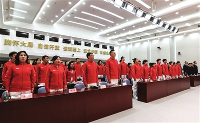 在代表团成立动员大会上,代表团副团长佟立新宣读了代表团名单并介绍了代表团组成情况。代表团共由286人组成,其中运动员126人(女子68人,男子58人),将参加7个大项15个分项91个小项的比赛, 是我国冬奥会境外参赛项目最多、运动员规模最大的一届。