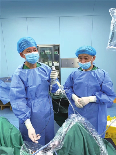 面对这一复杂病例,传统治疗方案陷入两难:输尿管硬镜灵活性有限,难以抵达肾内各个盏区处理多发结石;经皮肾镜手术则创伤相对较大,考虑到谢先生的基础疾病,手术风险较高,且由于谢先生此前几年就接连做过两次经皮肾镜取石术,对再次在腹部打孔取石有着深深的恐惧和抵触情绪。该院外科主任黄蕤带领团队反复研讨、周密评估,最终决定采用目前泌尿系结石微创治疗领域的先进技术 ——“末端可弯曲负压输尿管导引鞘下钬激光碎石术”,为谢先生量身定制治疗方案。