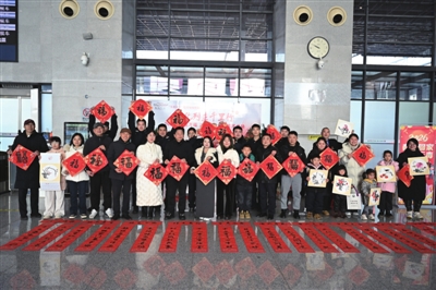2月2日,腊月十五,春运首日,由市文联、咸宁北站联合举办的“强基工程”新春特别行动——文化列车千里行·送万福进万家暨省文联荆楚“红色文艺轻骑兵”文艺惠民演出活动在咸宁北站候车大厅火热开场,来自市书协、美协的书画家现场挥毫泼墨,为候车旅客写春联,送年画,为旅客的归途增添浓浓暖意,更将一份份真挚的祝福,送达每一位期盼团圆的游子心中。(记者 杜培清 赵忠志 通讯员 张丹)