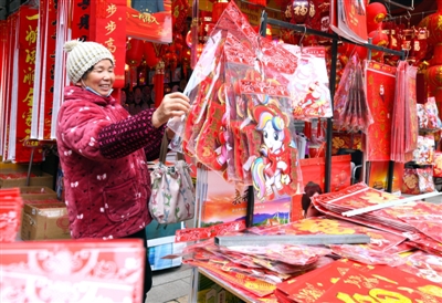 春节临近,嘉鱼县鱼岳镇北街年货市场年味渐浓。市民在摊位前选购春联、福字等年货,摊位上红灯笼、中国结等饰品琳琅满目,红色喜庆元素营造出浓厚的节日氛围。人们精心挑选心仪年货,传递对新年的美好期盼。