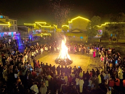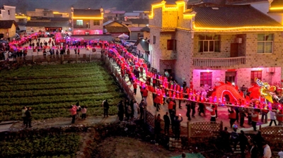 2月11日,通山县洪港镇江源村举办2026年“江源欢歌庆丰年、马跃龙腾贺新春”春节民俗文化活动。218节板凳相连,数百名青壮年扛起456 米的长龙,沿着江源河畔和古街巡游,祈求来年风调雨顺。