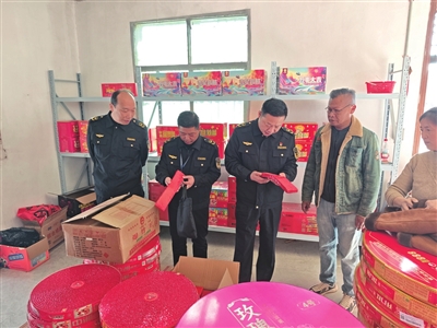 聚焦重点区域场所,筑牢烟花爆竹安全“防火墙”。执法人员以零售网点、储存仓库及城乡接合部为重点,开展拉网式排查,严查经营资质、产品标识标签及储存摆放规范,杜绝超标、伪劣、“三无”产品销售及超量储存、店外违规摆放等行为,督促完善购销台账,确保产品来源可溯。同时,现场开展安全普法宣传,引导经营户规范经营、提升安全防范意识。