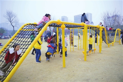 记者近日走访发现,玉泉街游园、十六潭公园东入口、市图书馆旁绿地、城铁南站沿河游憩带、龙潭河湿地公园、桂乡大道旁的双泉小游园等地,最近都新增了儿童游乐设施。
