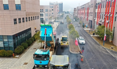 近日,通山南林工业园园区内路段机器轰鸣,摊铺机、压路机等正进行路面沥青摊铺作业。该园区着力打通内部道路“微循环”,对主干道及支线道路全面实施沥青铺装,并将配套道路交通标识,规划合理停车区域,为产业发展和群众安全出行提供更加便捷的通行条件。(记者 陈红菊 特约记者 金珂如 方盈颖)