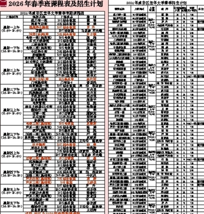 二 2026年春季班课程表及招生计划