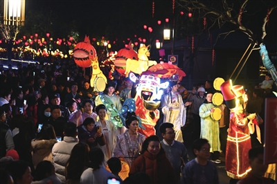 3月2日(正月十四)晚,咸安区太乙天沐温泉度假区灯火通明、人潮涌动。我们的节日——元宵“三元庙会”暨传统民俗文化展演在此热闹开场,万余名市民和游客一起逛庙会、品美食、看表演,感受地道咸安年味。(记者 陈志茹 赵忠志 葛建伟 特约记者 胡剑芳 李婷婷)详见16版