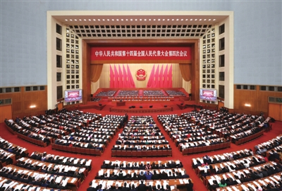 十四届全国人大四次会议应出席代表2878人。5日上午的会议,出席2765人,缺席113人,出席人数符合法定人数。