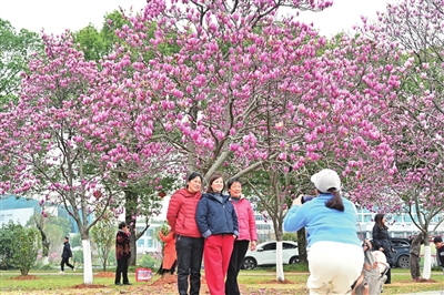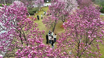 春暖花正开,玉兰香满城。连日来,市人民广场上一株株白玉兰、紫玉兰在暖阳下竞相绽放、争香斗艳,微风拂过,花香四溢,构成一幅诗意盎然的春日画卷。吸引众多市民游客前来踏青打卡,感受扑面而来的春日气息。 (记者赵忠志)