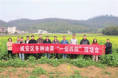 本报讯(记者 葛建伟 通讯员 陈茂红 张旭东)3月5日,咸安区冬种油菜“一促四防”现场会在浮山街道办事处太乙村召开,全区种植大户、各乡镇农业技术推广服务中心工作人员共30余人参会,现场学习实操技术,为辖区油菜稳产提质夯实技术保障。