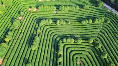 ④3月13日,咸安区双溪桥镇九彬村汪大珍千亩生态茶园绿意葱葱。 记者陈红菊/摄