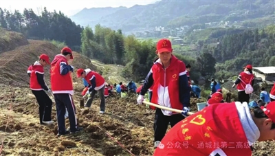 本报讯(记者 李思源 通讯员 吴子珺) 3月12日植树节,通城二中20名青年志愿者前往麦市镇七里村茶叶基地,参加由团县委组织的“隽邑添新绿 马年植青春”义务植树活动,用实际行动为家乡增添新绿。