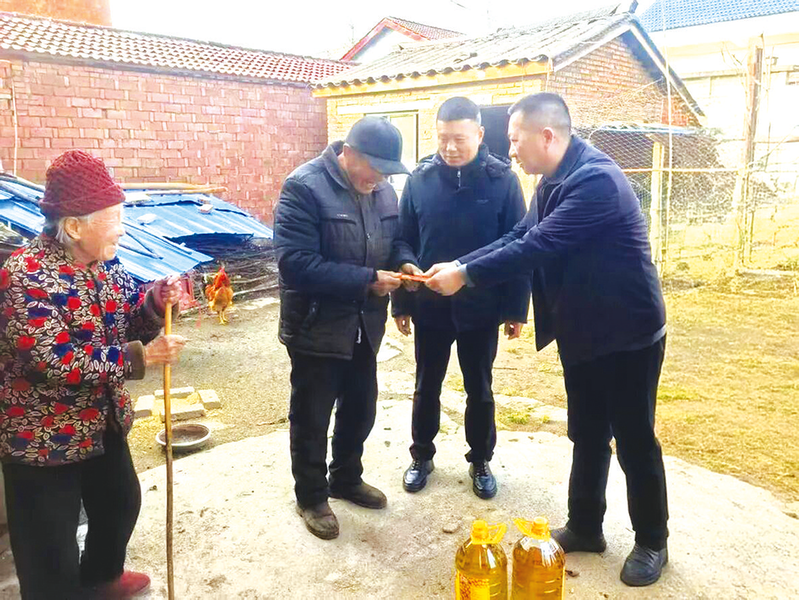 近日,随县万和镇财政所干部职工深入对口帮扶村邱家大湾村,走访慰问困难农户,为他们送去米、面、油等生活物资及慰问金。该财政所负责人表示,将持续关注特殊困难群体,用心用情做好精准帮扶,用实际行动传递温情。 (通讯员 余九洲 龚政摄)