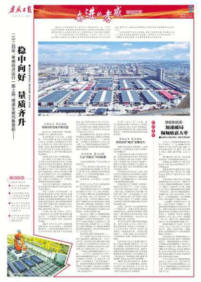 本报讯刚刚过去的2024年,是孝感发展历程上具有里程碑意义的一年。习近平总书记考察湖北,亲临孝感,给全市上下以强大的思想指引、精神鼓舞和前进动力。一年来,市委团结带领全市人民,发扬历史主动精神,克服多重困难挑战,全面落实“五总”要求,深入开展“十大行动”,全市经济运行稳中向好、持续向优,高质量发展的气场持续升腾,“必须是孝感”的自信空前高涨,中国式现代化孝感篇章迈出坚实步伐。 点赞2024,奋进2025!适逢孝感市两会召开之际,今日起,本报推出“奋进的孝感”特别报道,全方位、多维度展示高质量发展的“孝感实践”“孝感答卷”,为“十四五”规划圆满收官、奋力谱写中国式现代化孝感篇章鼓劲加油、营造氛围。