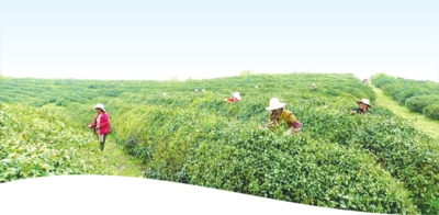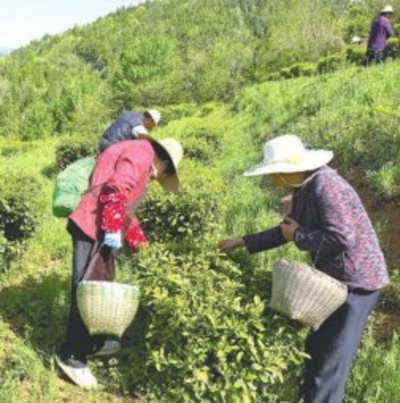 走进湖北怡缘茶叶有限公司,漫山遍野的茶树随着山势绵延起伏,茶农们穿梭于茶园,进行培管除草。