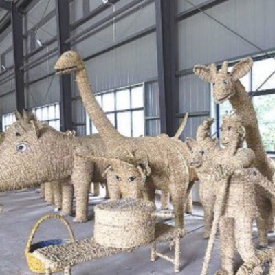 稻草大象憨态可掬,稻草小羊活泼可爱,稻草鹿群栩栩如生……步入安陆市正强工艺品有限责任公司,各式各样的草绳工艺品琳琅满目。它们全部取材于废弃秸秆,经过低茬收割、去杂晾晒,以及精细处理与手工编织,秸秆被赋予新的生命。