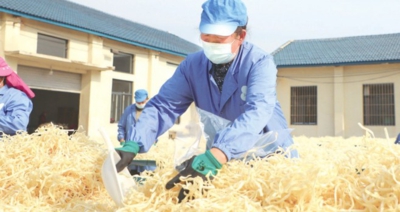 | 工作人员正在打包晾晒好的"三结豆皮" |