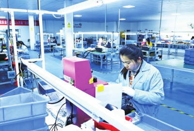 2月18日,位于云梦县城关镇的鲲腾新能源科技有限公司车间内,工作人员正在赶制订单。该公司是一家研发、生产及销售汽车锂电池配件等产品的新能源高新技术企业。目前,公司订单充足,产销两旺。全媒体记者李文勇特约记者聂杰杰摄