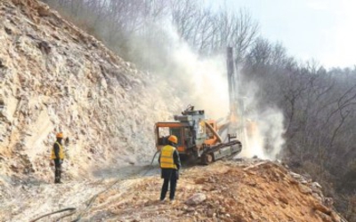 工人们正在修建黄麦岭磷化工年产150万吨地下采选矿项目联络道路。