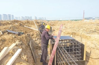 2月28日,位于城关镇精密产业园的莫尔电气项目,工人正在紧锣密鼓进行连梁支模、扎钢筋等工序。润扬纤维项目已经完成打桩承压,正在进行破桩工程,5月底完成厂房的钢结构工程。