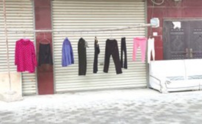 三利二街10号附近,居民沿街牵绳晾晒衣物