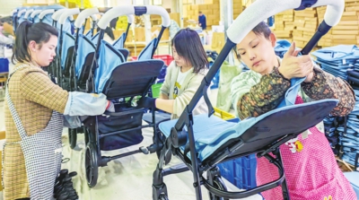 近日,在汉川市的湖北三阳儿童用品有限公司组装车间,工人正在组装来自德国的童车订单。该公司国内外市场两手抓,开发的多功能婴儿护理台备受国内外用户青睐,年销60万台。全媒体记者晏美华特约记者尹青摄