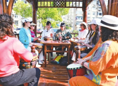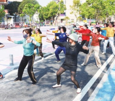 | 市高新区航天社区内,居民在改造后的文体活动广场练八段锦。 |