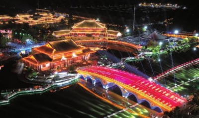 在槐荫河上,大型行浸式夜游演出《槐荫船说》以国家级非遗“董永传说”为故事主线,运用5D全息投影、智能水幕等科技手段,打造“天界-人间-仙境”三重时空的沉浸式体验,成为全国首创的“水上行浸式观演”模式。