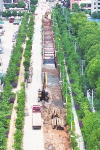 | 帅府路雨水箱涵施工现场。全媒体记者张高远 摄 |