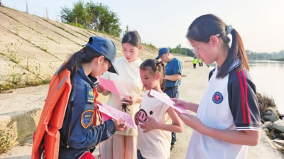 6月13日,云梦县应急管理局联合蓝天救援队,在清明河两岸开展“珍爱生命,预防溺水”宣传。救援队员身着专业装备,向青少年及家长发放安全手册,讲解防溺水知识、急救措施,筑牢暑期安全防线,守护生命安全。全媒体记者闵丽萍通讯员陈虹摄